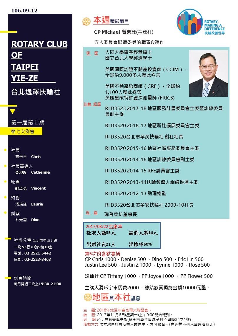 台北逸澤扶輪社第七次例會